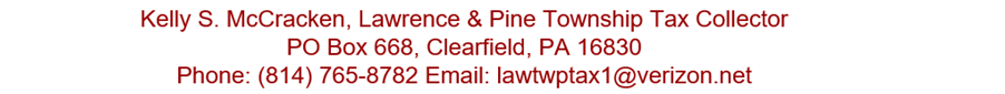 Tax Type - Only current year payments are accepted. Delinquent taxes must be paid to the Clearfield County Tax Claim Bureau.